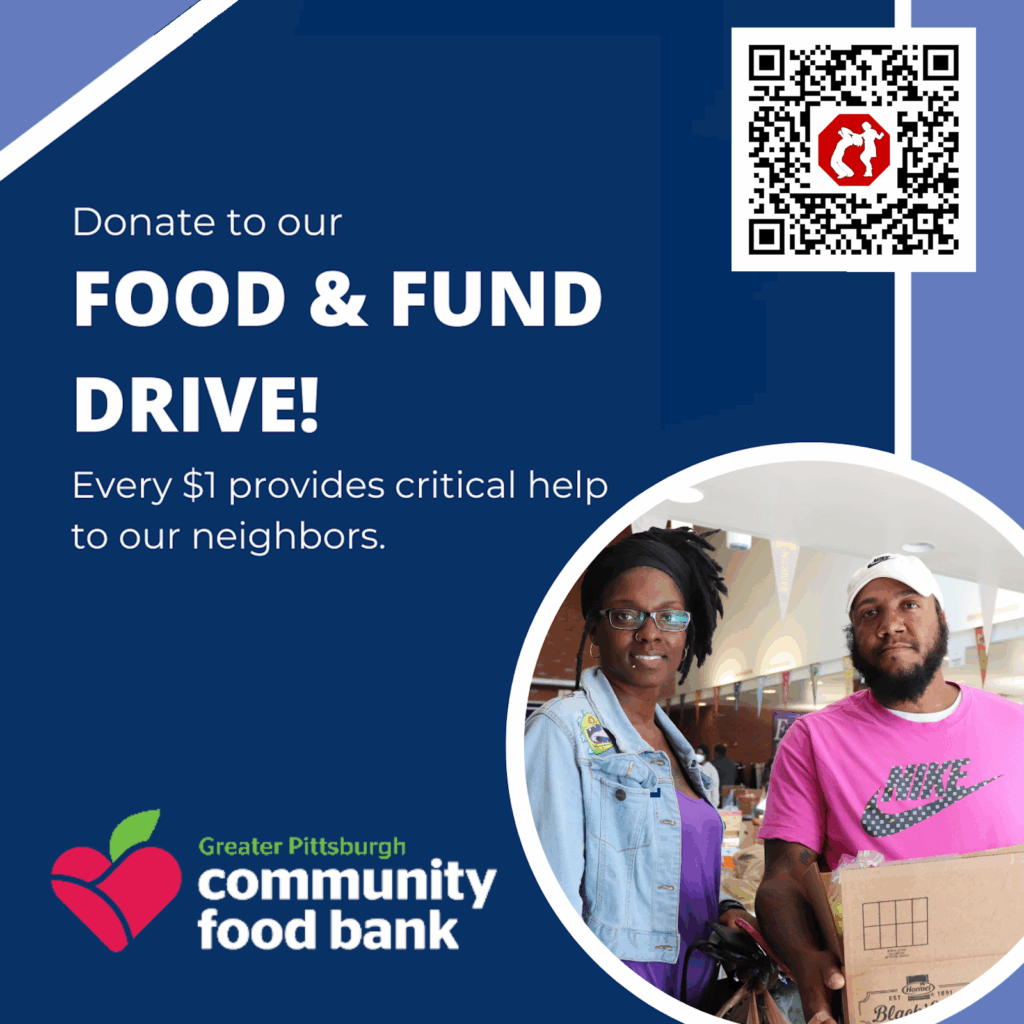 We’ve been supporting the Greater Pittsburgh Community Food Bank since 2013. In the past we’ve collected non-perishable items in exchange for raffle entries. This year we want your cash!