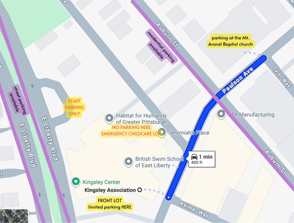 If that is full, residential parking can be found on Paulson Ave (both sides), East Liberty Blvd (left of Kingsley), Auburn St, and other side streets. Please do not park in the E Liberty Lot, just past Kingsley on the right, as it is private!